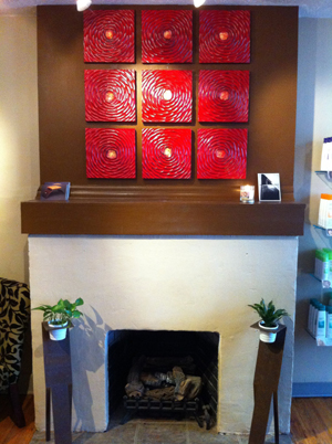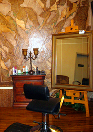 behind Fischer's eisel is a decoupage of parcel and newspaper.
